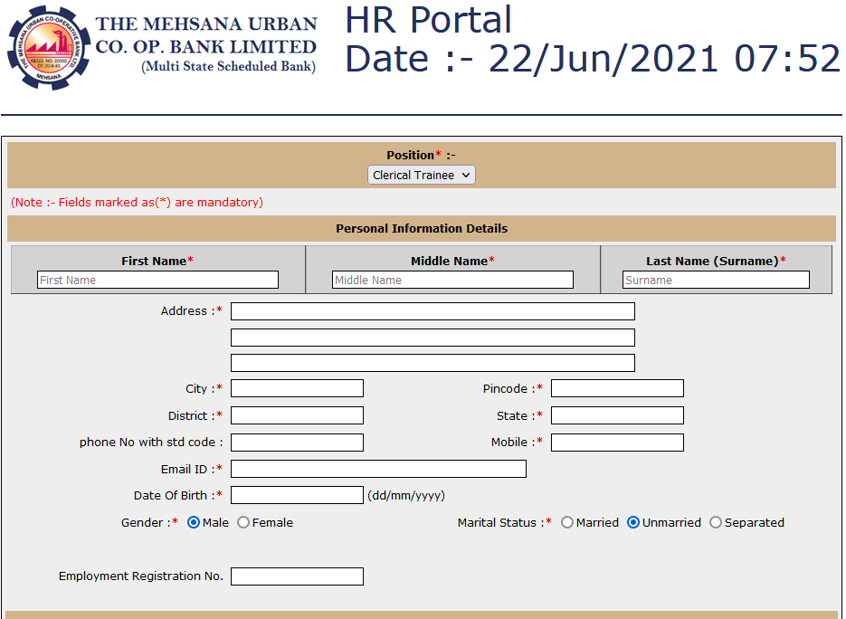 Mehsana Urban Cooperative Bank Recruitment 2021 www.mucbank.com: The Mehsana Urban Co-op Bank Limited (Multi State Scheduled Bank), Gujarat invites online applications from eligible candidates for 50 Clerical Cadre Trainee vacancies to be filled in MUC Bank branches. The last date for submission of online applications is 10th July 2021.