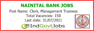 Nainital Bank Recruitment 2021 www.nainitalbank.co.in: The Nainital Bank Limited invites applications for appointment of Management Trainees and Clerks. The last date for registration of online applications is 31st July 2021.