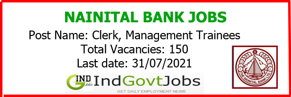 Nainital Bank Recruitment 2021 www.nainitalbank.co.in: The Nainital Bank Limited invites applications for appointment of Management Trainees and Clerks. The last date for registration of online applications is 31st July 2021.