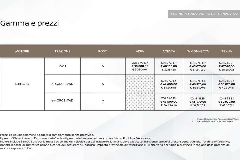We have already talked about e-POWER: the technology is the same seen on the Nissan Qashqai e-POWER if we look at the front-wheel drive version: an electric motor (here with 150 kW / 204 hp and 330 Nm of torque) takes care of moving the car and the three-cylinder petrol produces energy as a generator sending it to the motor, battery or both at the same time. Fort of variable compression ratio, the thermal can change the compression as needed: