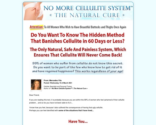 Description: Promotion 90% Commission! The Best Program To Get Ride Of Cellulite. Test Our Excellent Conversion! Big Profits With Upsells. Optimized Sales Letter. Help For Aff: Http://nomorecellulitesystem.com/members-program.h tml