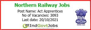 Northern Railway Apprentice 2021: Railway Recruitment Cell (RRC), Northern Railway, New Delhi invites online applications for engagement of 3093 Apprentices under the Apprentices Act 1961 for imparting training at various Division / Units / Workshops over Northern Railway. The last date for registration of online applications is 20th October 2021.