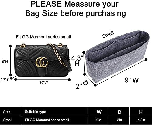 SIZE OF BAG ORGANIZER: Bag Insert Organizer Size Small: 9″W x 4.3″H x 2.0″D is very suitable for GG Marmont Small Matelasse Shoulder bags which dimensions: 10.0″W x 6″H x 3″D. Please use a tape measure to measure the inner length, width, and height of the Shoulder bags, then compare the size chart and purchase. Any questions, please contact us.
