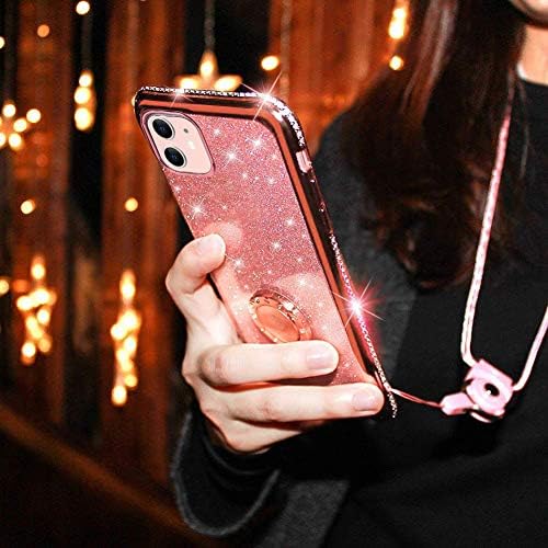 OCYCLONE for iPhone 11 Case, Cute Glitter Sparkle Bling Diamond Rhinestone Bumper with Ring Kickstand Women Girls Soft Pink Protective Phone Case for iPhone 11 [6.1 inch] 2019 – Rose Gold