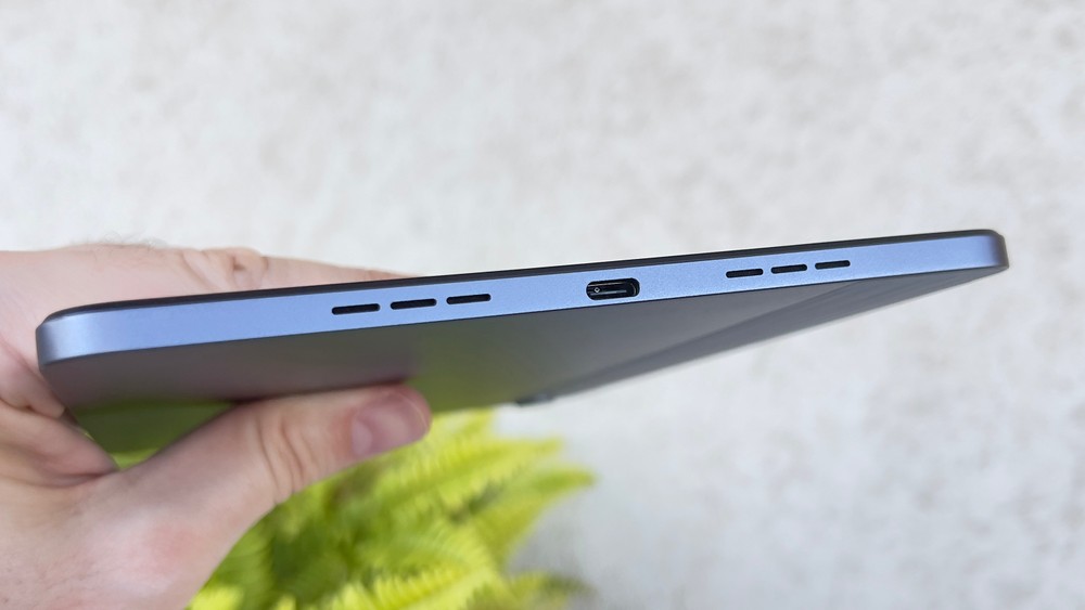 One fifth of the rear surface of Oppo Pad Air is in plastic or in any case in a material of plastic derivation, which next to the metal disappoints the fingertips. I wish I had anywhere sobriety hi tech and the pleasantness to the touch of metal, rather than a plastic solution that is nice to look at but less to touch. A tablet is mainly held in the hand, while a vase must be beautiful to look at. The regret is accentuated by the fact that the Oppo Glow processing it is scratch and fingerprint resistant as the company says, so a really good job has been done on the metal.