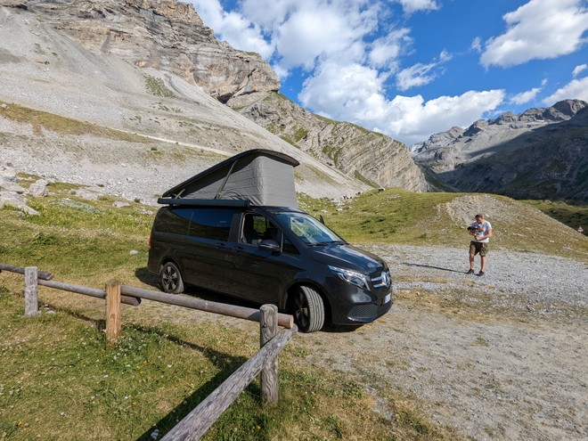 Here we are finally at the final stretch of our three day experience with the van Mercedes Marco Poloa journey on which we went on the hunt for the perfect shot at the starry sky, crossing some of the most suggestive alpine passes. For me and my fellow adventurers it was first time with a camperized van, we clashed with the organizational reality of such a trip, also made up of rigid temperatures at high altitudes, narrow roads and a lot of inexperience but also of the sparkling freedom that a vehicle of this type can give.