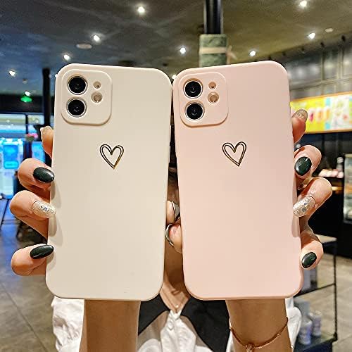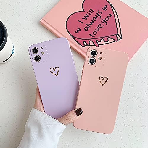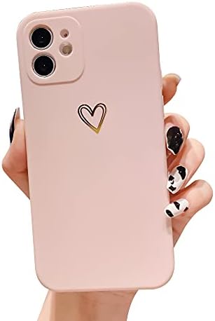 Ownest Compatible with iPhone 11 Case for Soft Liquid Silicone Gold Heart Pattern Slim Protective Shockproof Case for Women Girls for iPhone 11-Pink