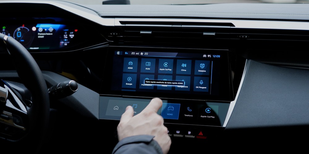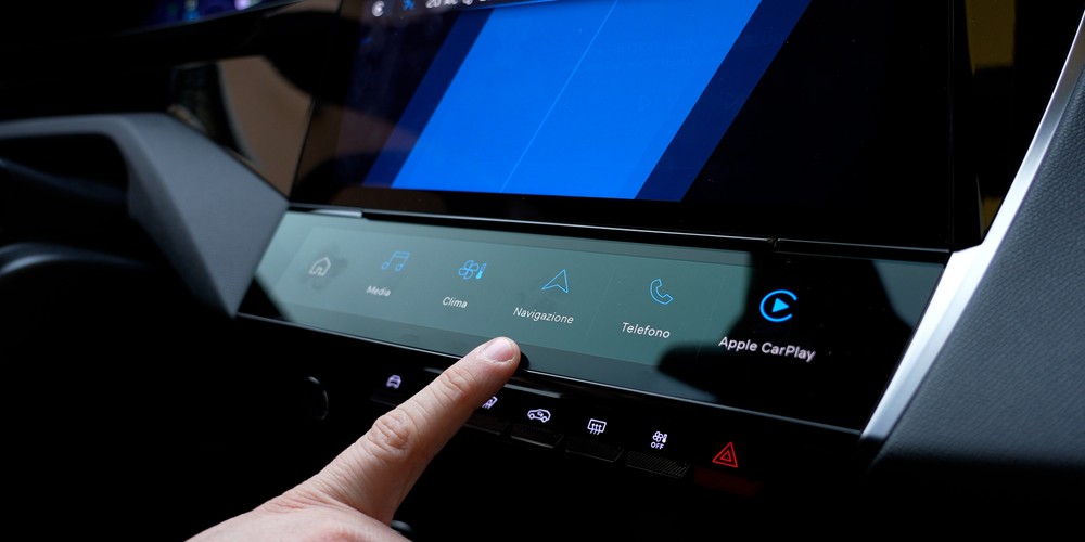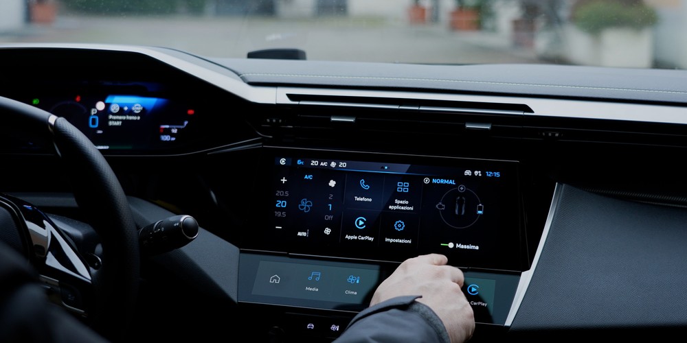 We said that the the ability to customize the elements of the i-Cockpit is undoubtedly one of the strengths of the infotainment Peugeot and therefore here we find this feature also in relation to the touch controls positioned under the 10-inch central display. In fact, at the base of this screen we find a second panel, also 10 inches but in a decidedly more elongated format, on which quick links to some “applications” that we find on board the i-Cockpit are displayed.
