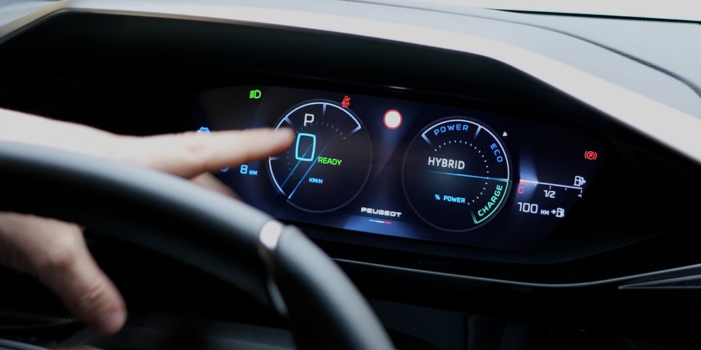Alternatively Peugeot offers 4 pre-installed configurations and already, in my view, able to satisfy everyone’s main needs. The main elements that make up these screens are typical of the most common instrument panels. We therefore have the speedometer dial, the autonomy indicators (electric and petrol), the indications on the distances and those concerning the set driving mode. But that’s not all, the display behind the steering wheel can in fact also show a reproduction of the navigator map (it only works with the integrated Tom Tom navigator) or a diagram of the operation of the vehicle’s propulsion system.