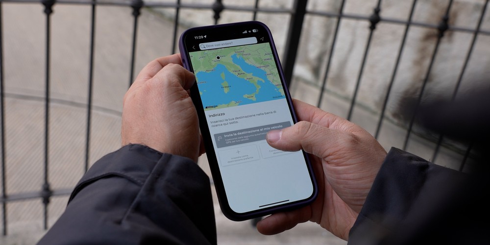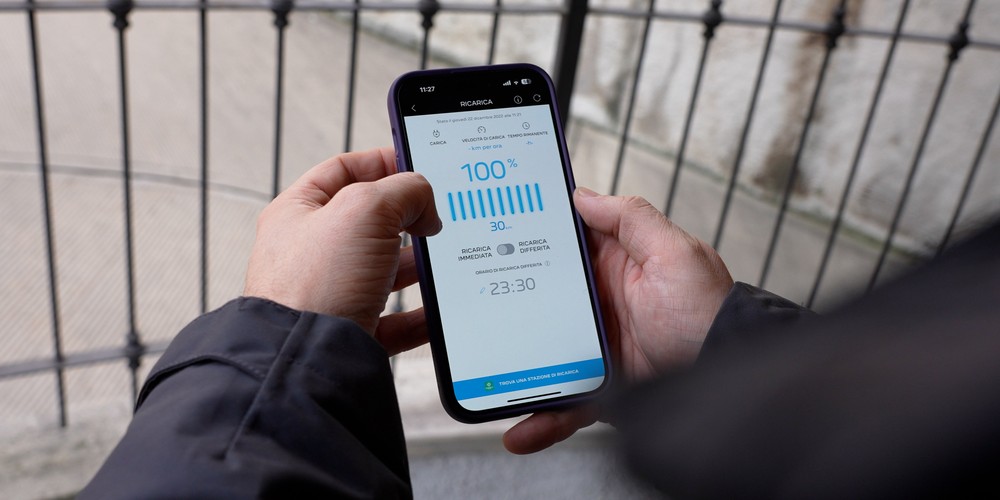 On the main screen it is therefore possible obtain information on the vehicle’s range, both electric and petrol, but also contact assistance and make an appointment for ordinary car maintenance. Similarly, always from the home screen we can access the screen relating to the top-up options, which allows us to check the status of the recharge itself as well as to program the delayed start of the power supply or find the closest column.