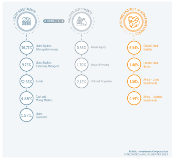 Asset classes in the PIC’s portfolio as at 31 March 2023. Source: PIC Integrated Annual Report 2023