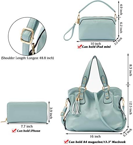 PRACTICAL USE:This hobo purse for women have 3 pcs:1 large tote purse,1 handle Bag,1wallet clutch.The tote purse set can hold your iPad,wallet,makeups,phone,little water bottle,perfumes,gloves and other your everyday items and keep them organized.Perfect for dating,shopping,working,traveling, party,vocation and other occasions.