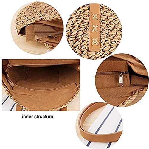 Round Straw Bag Large Summer Beach Straw Tote Bag Woven Purse Handle Shoulder Bag for Women Vocation Handbags