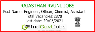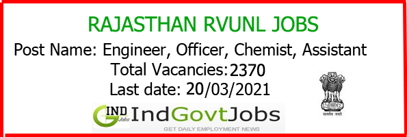 RVUNL Recruitment 2021: Rajasthan Rajya Vidyut Utpadan Nigam Limited (RVUNL / RRVUNL), Government of Rajasthan, Jaipur invites online applications for appointment of Assistant Engineer, Accounts Officer, Personnel Officer,Junior Engineer-I, Junior Chemist and Informatics Assistant in RVUN, RVPN, JVVN, AVVN and JdVVN companies. The online registration process will be start from 7th June 2021. The last date for filling up online applications is 21/06/2021.