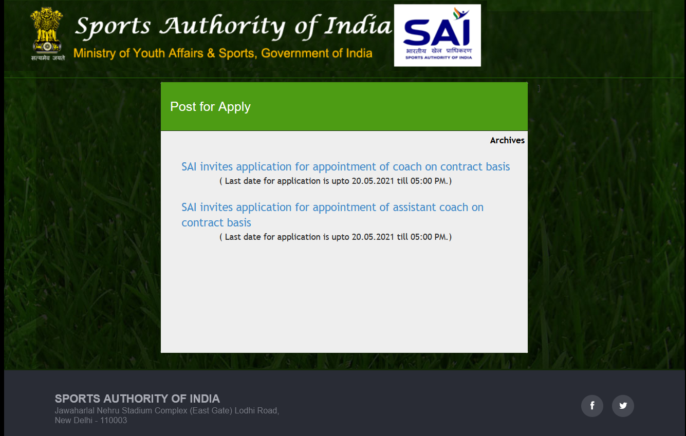 ✅ The way to Apply: Eligible candidates apply on-line by Sports activities Authority of India official web site (sportsauthorityofindia.nic.in/sailjobs). The final date for receipt of on-line purposes is 20/05/2021.