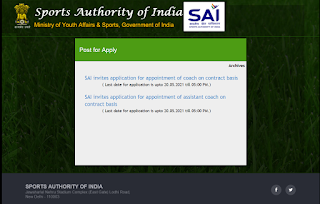 SAI Recruitment 2021 for Coaches and Assistant Coaches: Sports activities Authority of India (SAI) invitations purposes within the prescribed format from eligible candidates for appointment of Coaches and Assistant Coaches purely on contract foundation as for an preliminary interval of 04 years (topic to yearly efficiency analysis). The final date for receipt of purposes is 20th Could 2021.
