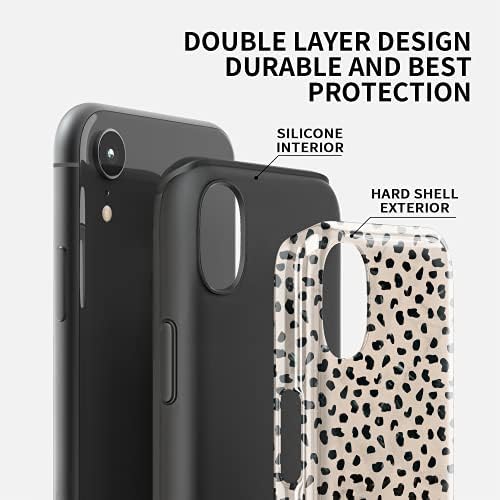 Tenpon iPhone XR Case – Black Polka Dots Pattern Almond Case Designed for Girls Women, Cute Heavy Duty Shockproof Dual Layer Hard PC + Flexible TPU Rubber Cover Protective Phone Case