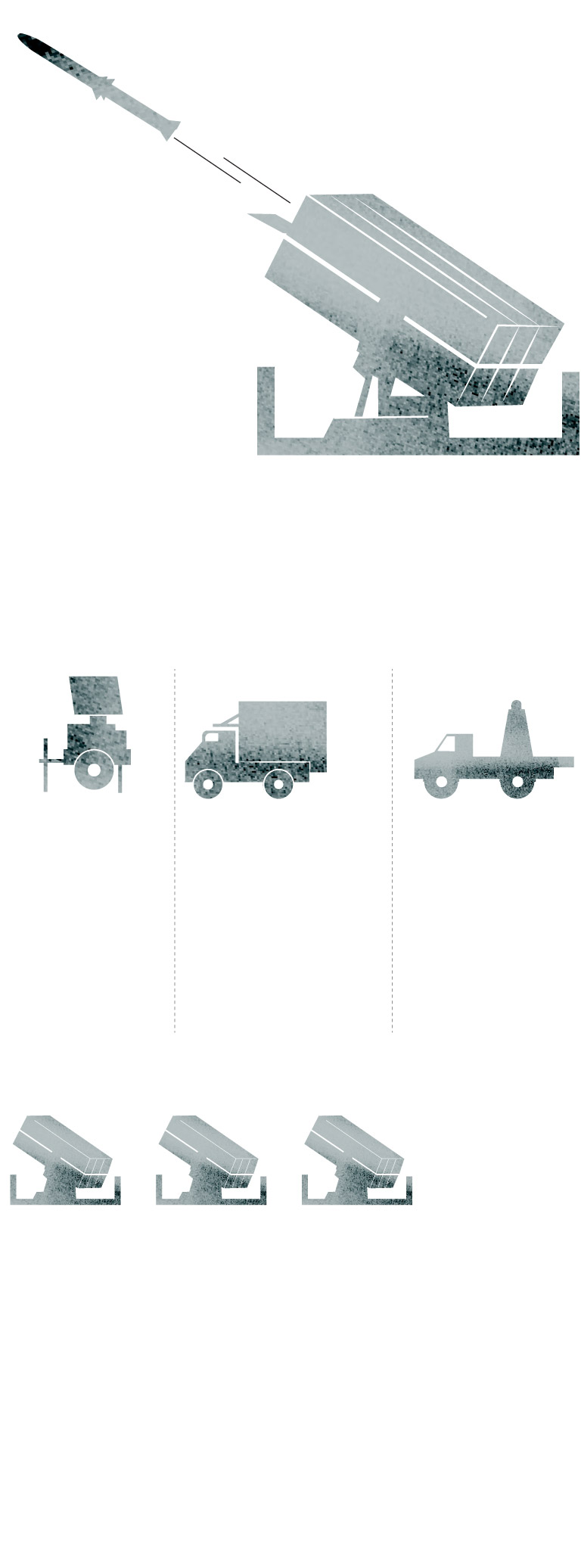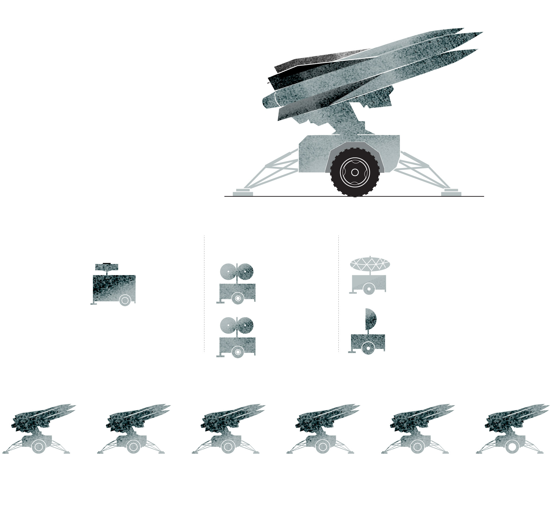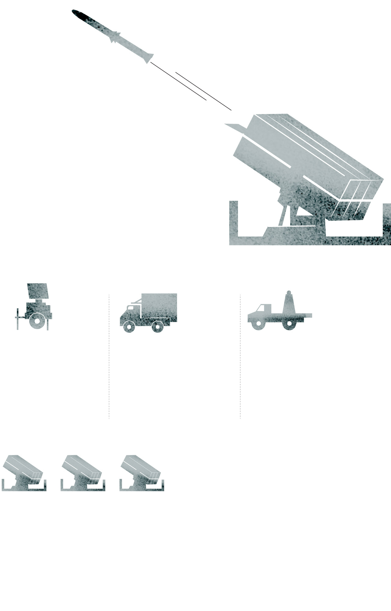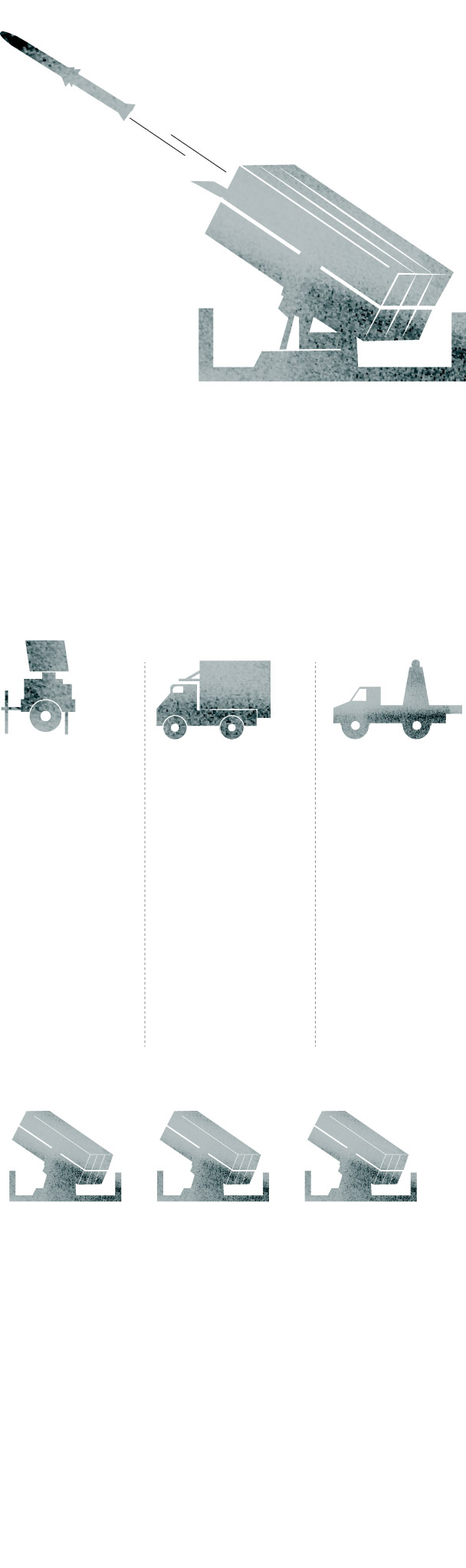 A typical unit has six launchers. In addition to their missile aiming function, they support pre-launch commands and transport the missiles.