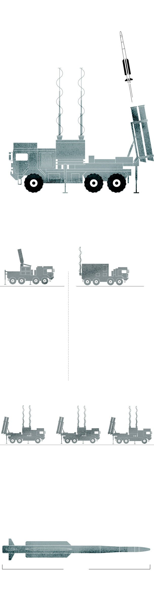 The German IRIS-T system is similar to NASAMS. It’s a tier below the Patriot system and is configured to use missiles initially designed for fighter jets.