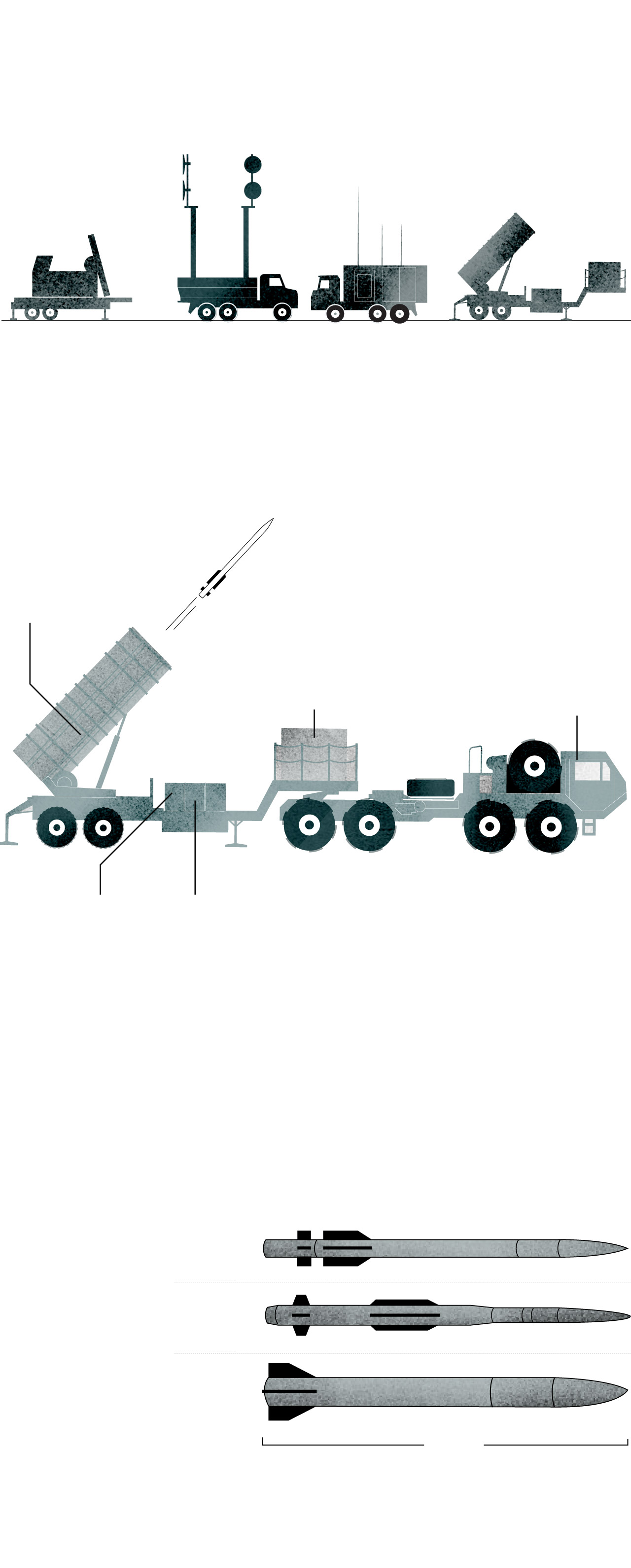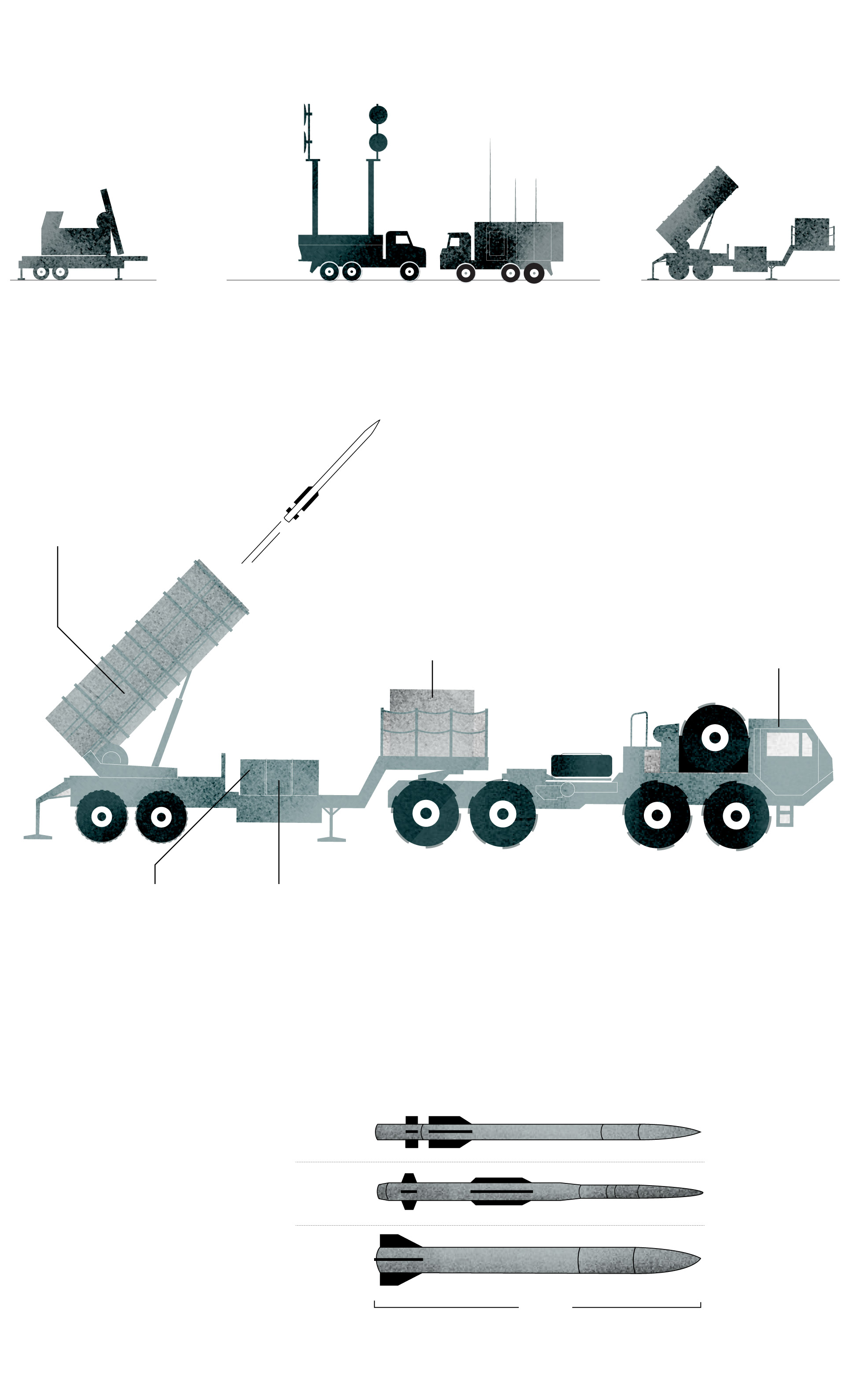Along with missiles, a Patriot battery includes radars and control stations to identify, track and target enemy weapons.