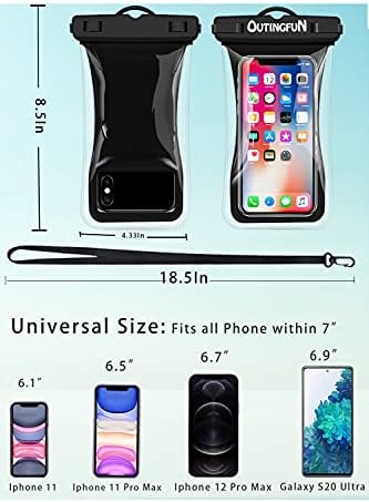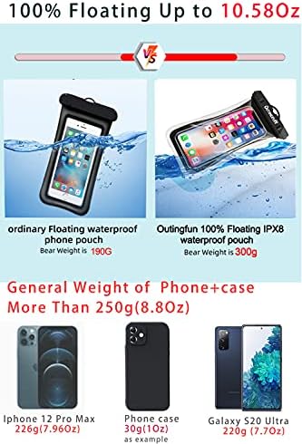 100% FLOATING WATERPROOF PHONE POUCH: with patent air bag Outingfun waterproof bag supports devices up to 10.58 oz (300g) 100% floating on water, while other floating phone pouch is only 6Oz. The water proof phone bag floating your phone and its case on water. Outingfun water proof phone slip is large water proof phone case for cellphone, cash,credit card etc. One waterproof phone dry bag for all, no more waterproof wallet needed in beach,kayaking.