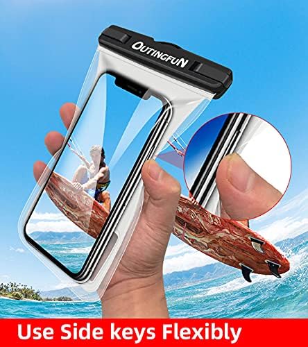 IPX8 WATERPROOF PHONE CASE: OUTINGFUN phone dry bag is IPX8 graded waterproof case. Our waterproof pouch passed a 30-minute waterproof test at a depth of 100ft. Just make sure you have sealed the water proof bag for phone tightly before underwater operations.Propose pressing the volume button on waterproof phone holder to take photos in deep water because phone may be affected by hydraulic pressure. Not applicable to touch ID and fingerprint unlocking.
