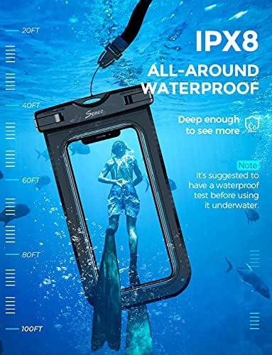 IPX8 Waterproof Rating: Seneo waterproof phone case offers full protection up to 100 feet/ 30 meters underwater. This cellphone dry bag with functions of waterproof, sand, dust, and snow protection. Perfect for swimming, diving, kayaking, bathing, boating, rafting, skiing other activities.