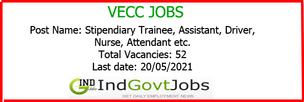 VECC Kolkata Recruitment 2021 recruitment.vecc.gov.in: Authorities of India, Division of Atomic Vitality, Variable Vitality Cyclotron Centre (VECC) Kolkata invitations on-line purposes from eligible Indian Residents for appointment of following Stipendiary Trainee, Nurse, Sub Officer, Driver, Work Assistant and Canteen Attendant posts. The final date for receipt of purposes is 20th Could 2021.