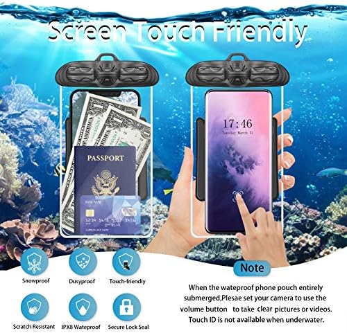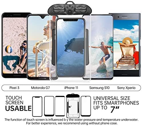 🏖️SENSITIVE CONTROL: Designed for water sports & outdoor use, high-quality material makes this waterproof phone bag easy and accessible for a friendly screen-touch. Transparent cover is great for underwater photography, it also works with all the Home buttons, including iPhone 8/8 plus but not with touch ID fingerprint. With it you can get great pool shots, videos, make phone calls, sending messages, etc.