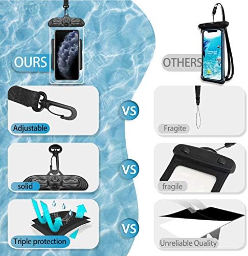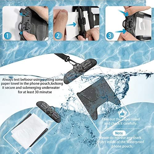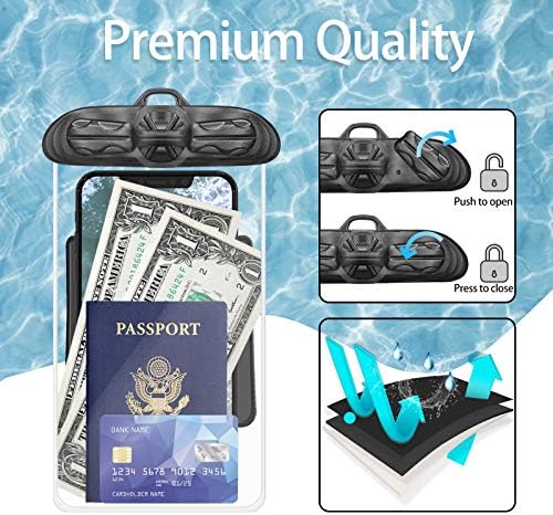 🏖️UPGRADED SEAL TECH: The whole new snap-and-lock seal clip and fully enclosed edge help JYSD waterproof pouch protect your phone. Simply open and close the pouch by turning two switches on top. ABS materials ensure durable use with scratch resistance and wear resistance.