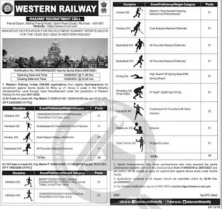 Employment Notification No. RRC/WR/02/2021 (SPORTS QUOTA)