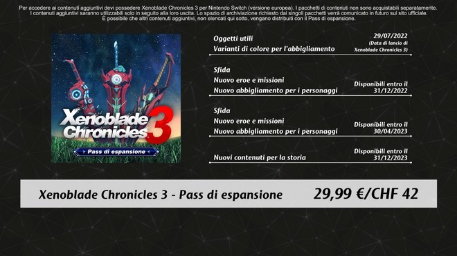 During the June Direct entirely dedicated to the game, Nintendo did not limit itself to presenting the main story but also revealed the plans for future expansions coming soon. The Xenoblade Chronicles 3 Expansion Pass is already available today at the price of 29.99 eurosand the release of the additional contents is staggered into four distinct phases, with the first – which is obviously also the least rich, and is limited to the addition of color variations for clothing – active right now.