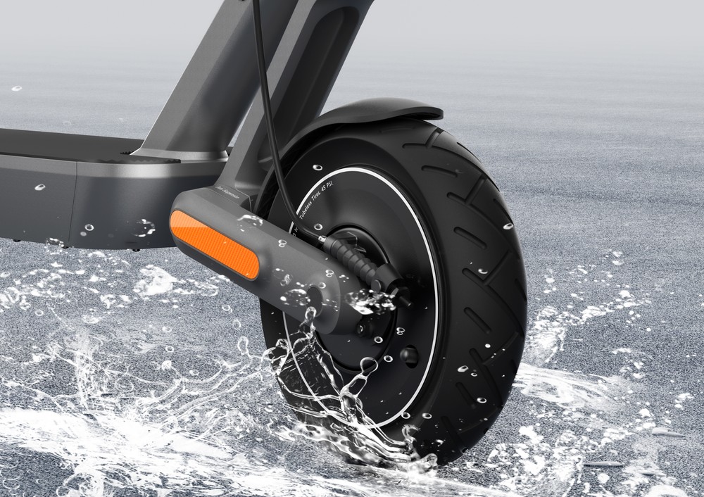 Electric Scooter 4 Ultra is the first Xiaomi scooter equipped with a double suspension system for safer and more stable driving even on the roughest roads. Furthermore, to reduce the risk of tire bursting, the Xiaomi Electric Scooter 4 Ultra is equipped with 10 inch Xiaomi DuraGel tires anti-puncture and self-sealing, which provide greater safety and improve the driving experience.