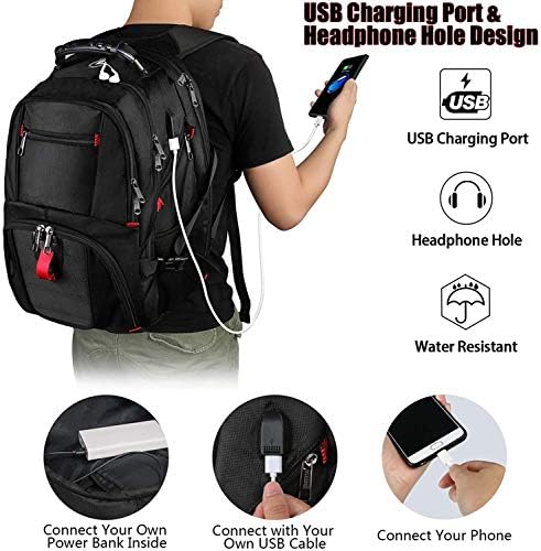 LARGE AND DURABLE MATERIAL: Size of extra large backpack: 14.6 x 10.2 x 19.0 (inches), Capacity: 50L, separate padded laptop compartment hold for 14, 15,15.6 and up to 17inch Laptop/computers (Laptop over 17inch or thick please buy 18.4inch backpack)for boys and girls, teens, adults, women, men and teacher. The travel backpack for men women made from high quality polyester fabric shockproof with high density nylon lining for better TEAR and WATER RESISTANT and heavy duty backpack