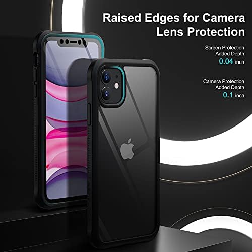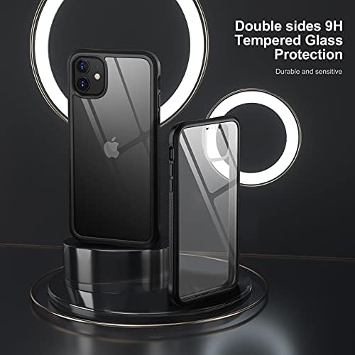 YOUMAKER Design for iPhone 11 Case with Screen Protector Clear Tempered Glass Case for iPhone 11 6.1 Inch – Onyx